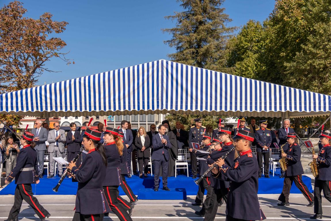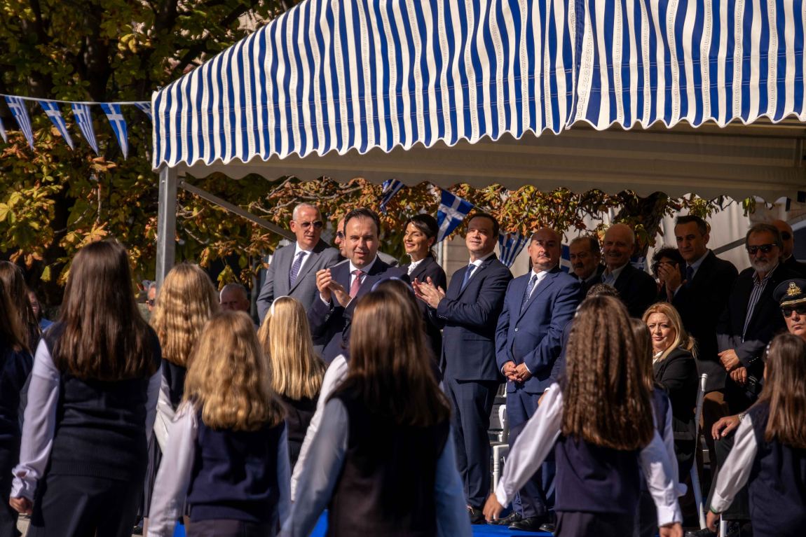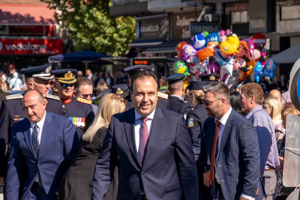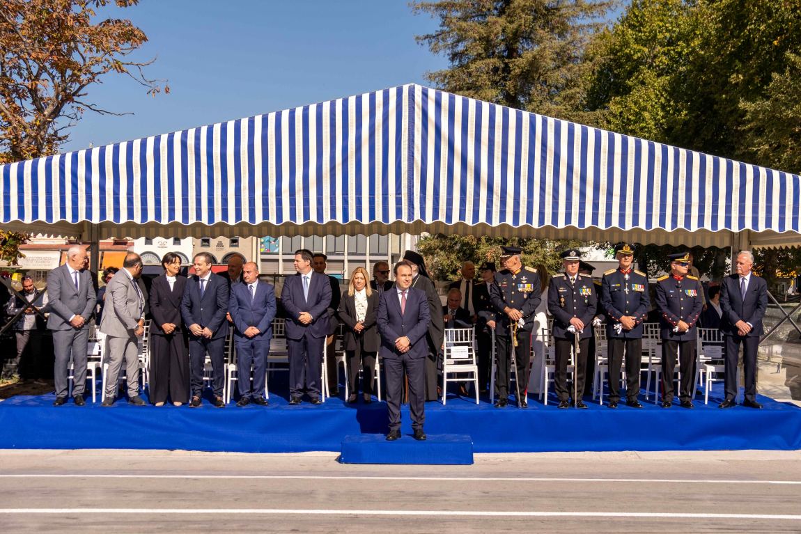 Η παρέλαση για την επέτειο της 28ης Οκτωβρίου στα Τρίκαλα πραγματοποιήθηκε υπό λαμπρό ήλιο και με κάθε επισημότητα. Παρόντες στην εκδήλωση ήταν σημαντικές πολιτικές και στρατιωτικές προσωπικότητες, με επικεφαλής τον Υπουργό Ψηφιακής Διακυβέρνησης κ. Δημήτρη Παπαστεργίου. Συνοδευόταν από τον Υφυπουργό στον Πρωθυπουργό κ. Θανάση Κοντογιώργη, την Αντιπεριφερειάρχη ΠΕ κ. Χρύσας Ντιντή, καθώς και τον Δήμαρχο Τρικκαίων κ. Νίκο Σακκά. Παρόντες επίσης ήταν οι Βουλευτές κ. Μαρίνα Κοντοτόλη και κ. Θανάσης Λιούτας, μαζί με άλλες πολιτειακές και στρατιωτικές αρχές.