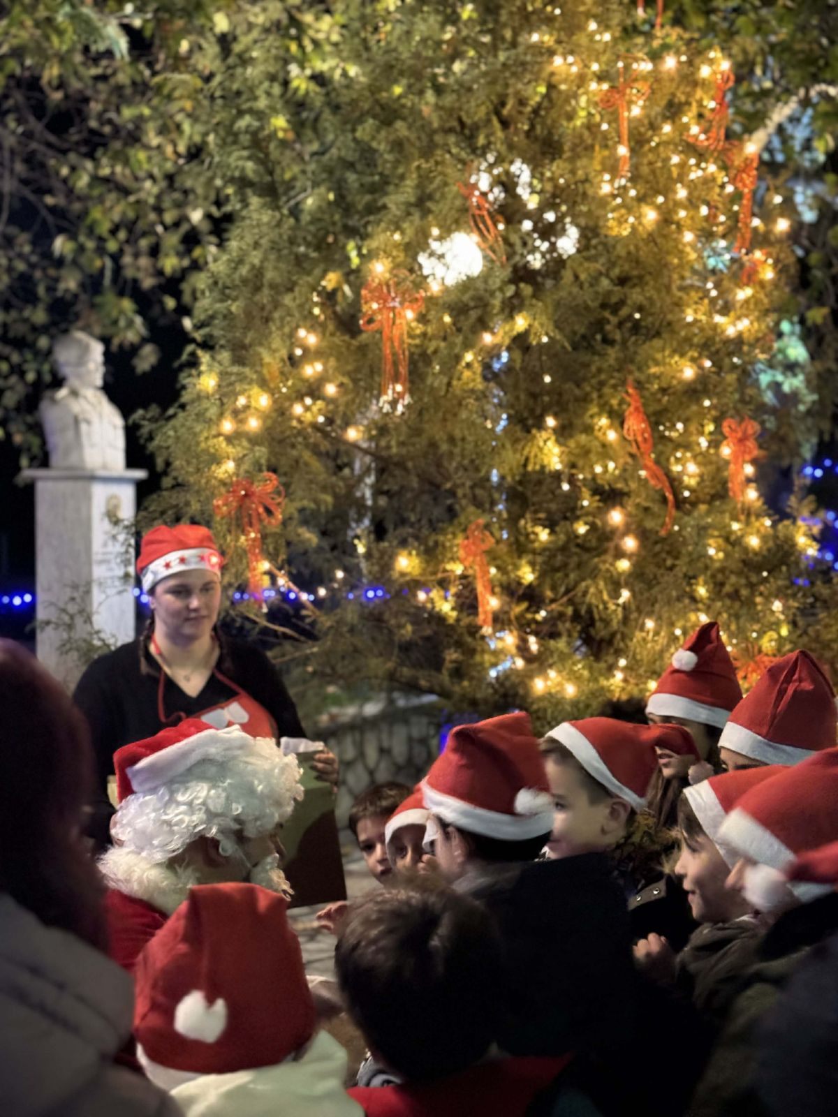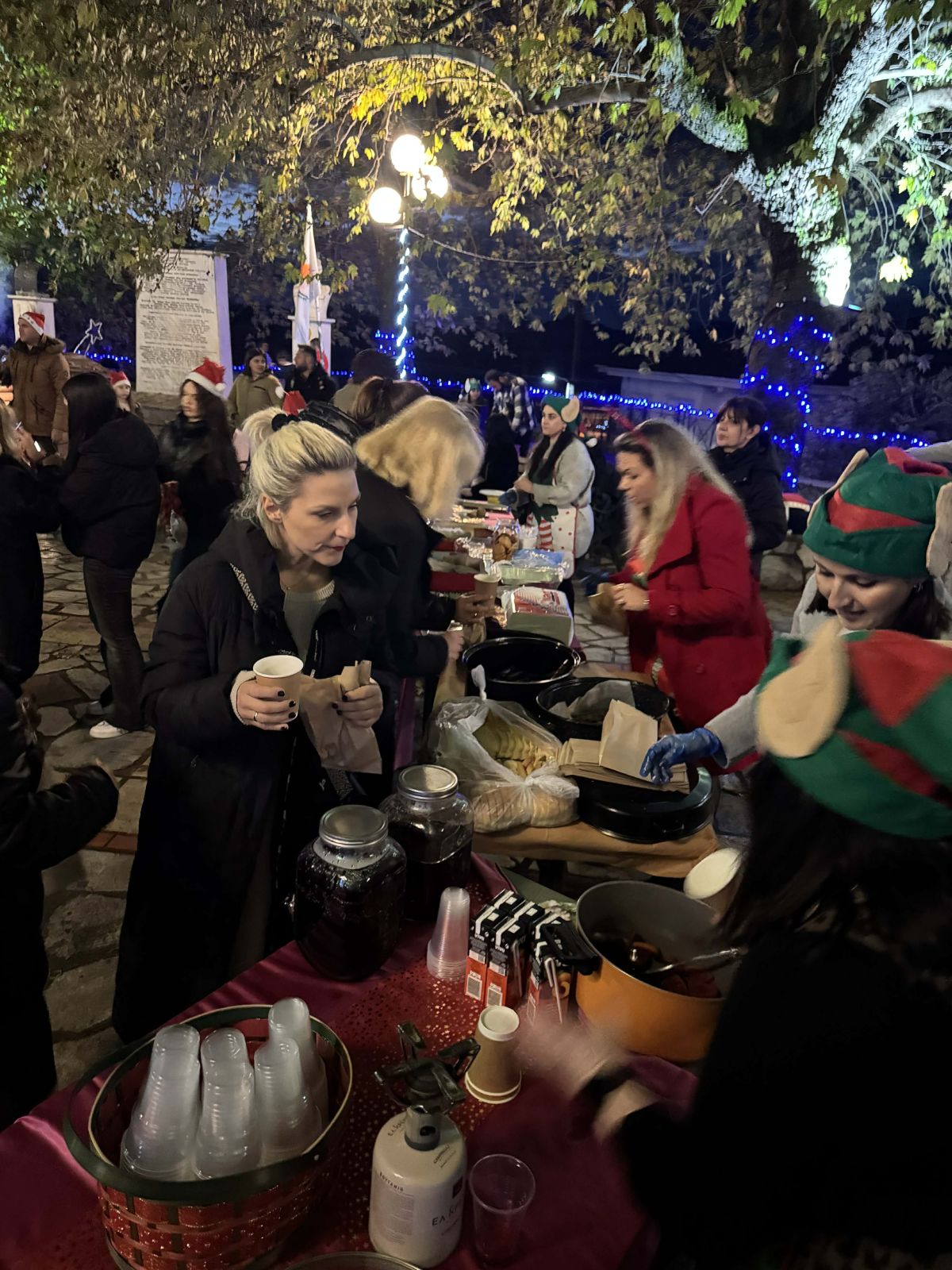 Οι κάτοικοι αντάλλαξαν ευχές και χαμόγελα, φωτογραφήθηκαν δίπλα στο στολισμένο δέντρο και μοιράστηκαν τη λάμψη και τη χαρά των γιορτινών ημερών που πλησιάζουν.