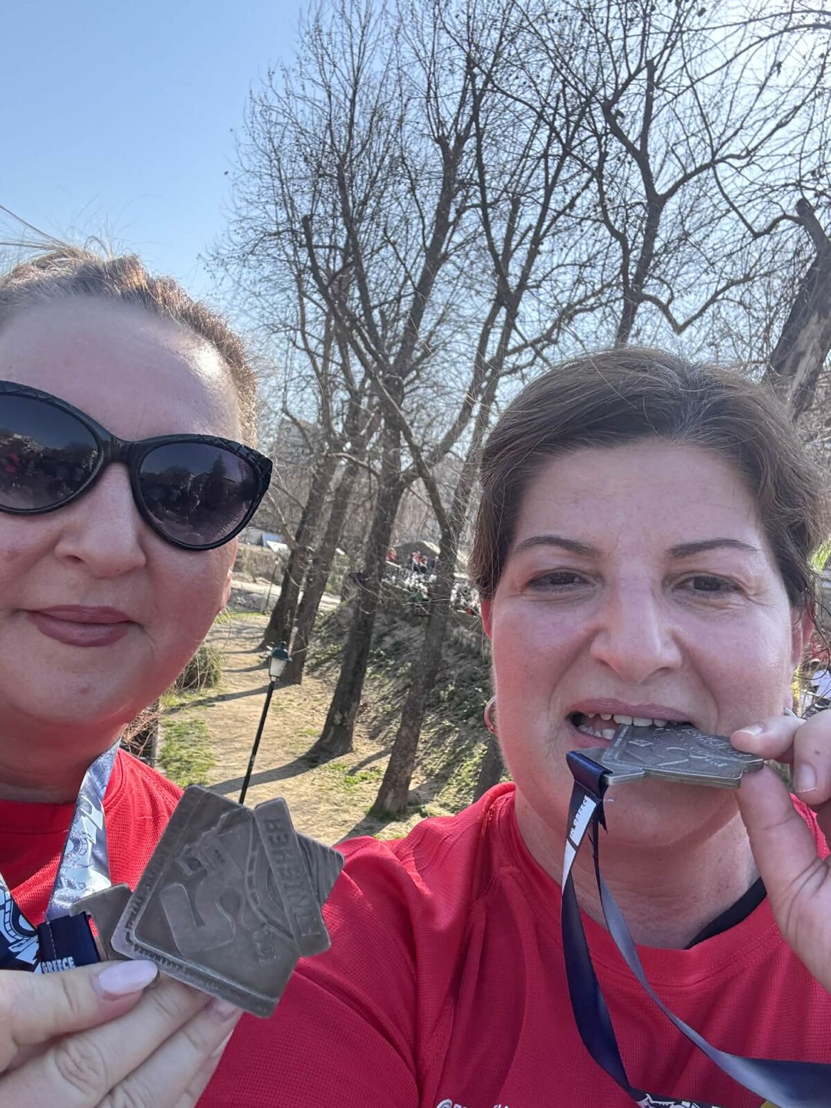 Η Ευαγγελία Σωτηρίου και η Μαρία Μακρή, δύο επιστήθιες φίλες με κοινό πάθος για το τρέξιμο, απέδειξαν πως η επιμονή και η καλή παρέα κάνουν τη διαφορά. Καθημερινές προπονήσεις, χιλιόμετρα γεμάτα κουβέντες, γέλια και μαραθώνιες συζητήσεις έγιναν η καλύτερη συντροφιά στον δρόμο προς τον στόχο τους. Με βόλτες, ιδρώτα και πολλή θέληση, έφτασαν φέτος στη μεγάλη στιγμή: τη συμμετοχή τους στα 5 χιλιόμετρα του Ημιμαραθωνίου. Περνώντας τη γραμμή του τερματισμού, το πολυπόθητο μετάλλιο ήταν η πιο όμορφη επιβράβευση για την προσπάθειά τους. Ένα μετάλλιο που συμβολίζει όχι μόνο τον αγώνα, αλλά και τη δύναμη της φιλίας, της συνέπειας και της κοινής τους διαδρομής.