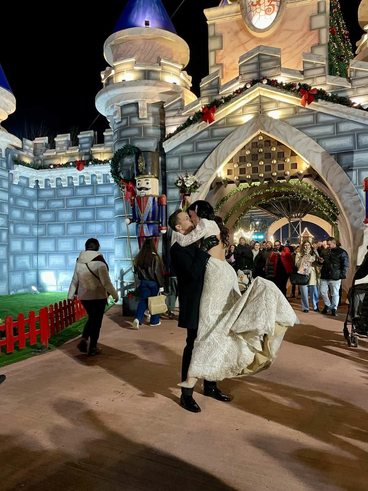Ξεχωριστή νότα στο γαμήλιο παραμύθι αποτέλεσε η γαμήλια φωτογράφιση στον Μύλο των Ξωτικών, όπου το γοητευτικό ζευγάρι και η πανέμορφη νύφη εντυπωσίασαν μέσα στο απόλυτο χριστουγεννιάτικο σκηνικό.