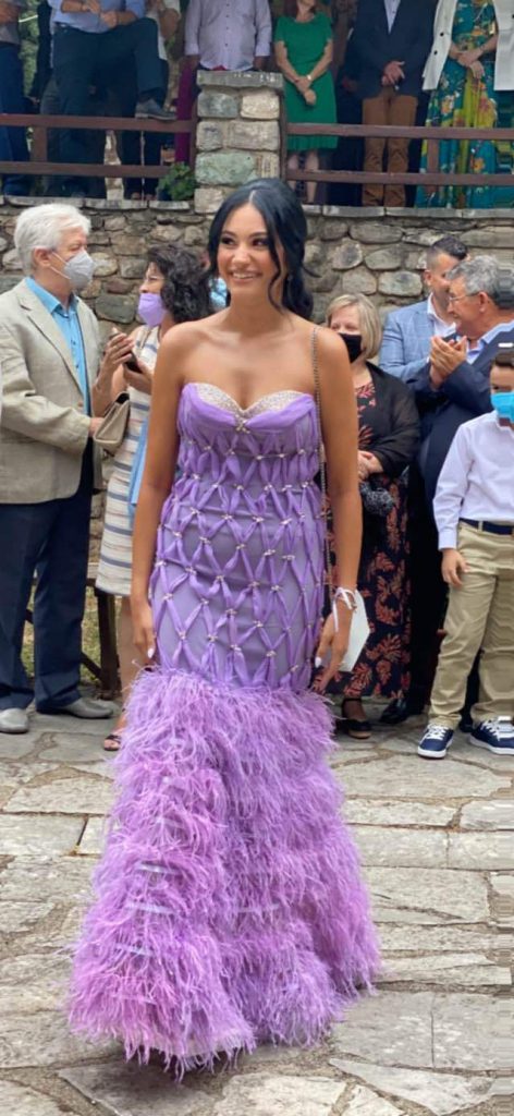 Εντυπωσιακή και πάλι η νέα δημιουργία της σχεδιάστριας Φρύνης Γιαννούλη σε λιλά απόχρωση παραγγελία της αδερφής της νύφης σε γνωστό γάμο στην πόλη.