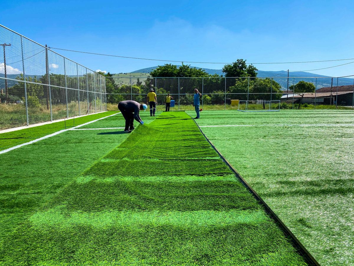 τεχνητό γκαζόν και ο σχετικός γηπεδικός εξοπλισμός, ενώ στη συνέχεια θα τοποθετηθεί ο