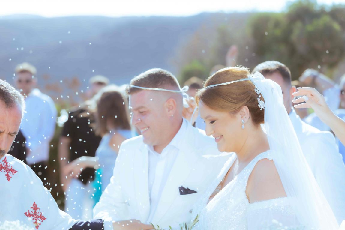 Συγκινητικές στιγμές ήταν η προετοιμασία της νύφης & του γαμπρού, όπου τηρήθηκαν όλα τα Τρικαλινά έθιμα…με επιλογές στο λευκό χρώμα που ταίριαζαν απόλυτα με την ομορφιά της νησιώτικης παράδοσης. Με θέα το απέραντο γαλάζιο του Αιγαίου συγκεντρώθηκαν στενοί συγγενείς και φίλοι που πήγαν μαζί τους στο νησί για να μοιραστούν αυτή την ιδιαίτερη κι ευτυχισμένη μαζί τους.