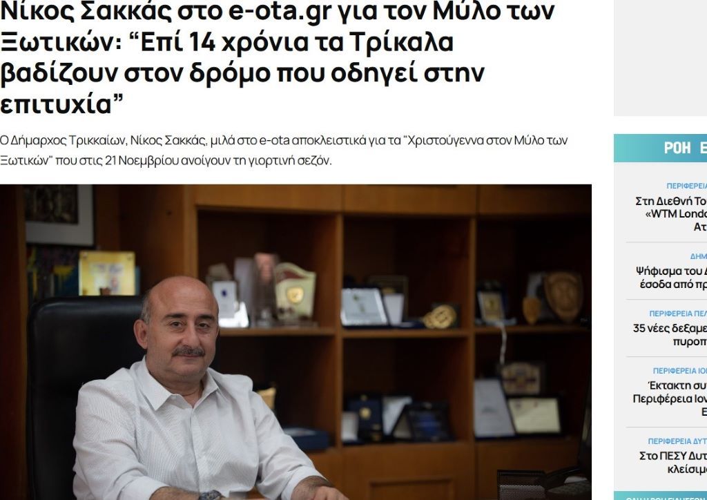 Ακολουθεί η συνέντευξη στον σύνδεσμο https://e-ota.gr/dimoi/115578/nikos-sakkas-epi-