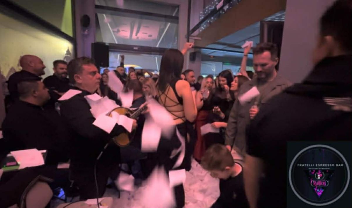 Σε ρυθμούς νυχτερινού κλαμπ κινήθηκε το Café Fratelli το βράδυ του μουσικού event που συζητήθηκε όσο λίγα στην πόλη. Οι ιδιοκτήτες, Σάκης και Δημήτρης Μάντας, απέδειξαν ότι ξέρουν πώς να ανεβάζουν τον πήχη, μεταμορφώνοντας το αγαπημένο στέκι σε έναν ζωντανό χώρο ελληνικής live διασκέδασης και δημιουργώντας νέα δεδομένα στη νυχτερινή ζωή.
