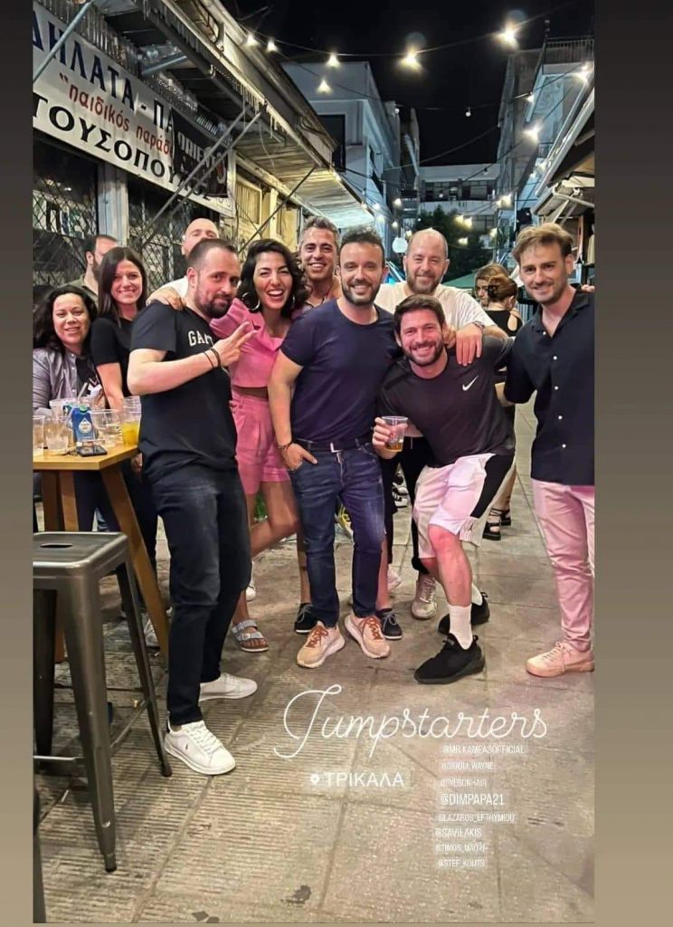 Οι Jumpstarters …σε μια χαλαρή βραδιά εξόδου …με κοκτέιλ και ανεβασμένη διάθεση .Οι αθλούμενοι του γνωστού γυμναστηρίου Jumpstart του Δημήτρη Παπαναστασίου περνάνε καλά και εντός και εκτός γυμναστηρίου και αυτό φαίνεται από την δεμένη πάρεα που έχουν φτιάξει . Εκδρομές, γενέθλια , πάρτι όλα για τους Jumpstarters.