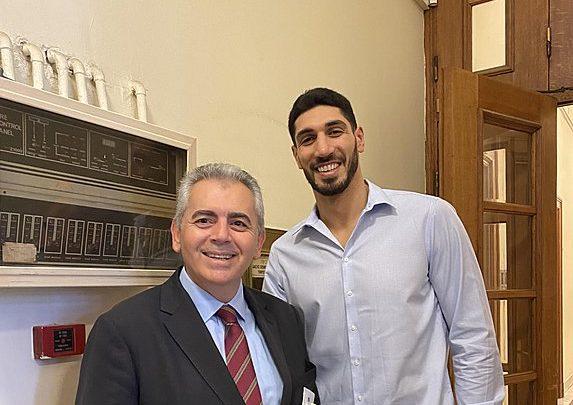 Κρατώντας μια φανέλα των Boston Celtics, την οποία θα δωρίσει στον Πρόεδρο του ΠΑΣΟΚ Νίκο Ανδρουλάκη με τον οποίον συναντάται αυτή την ώρα μπήκε λίγο πριν από τις δέκα το πρωί στη Βουλή ο Τούρκος μπασκετμπολίστας Ενές Καντέρ.