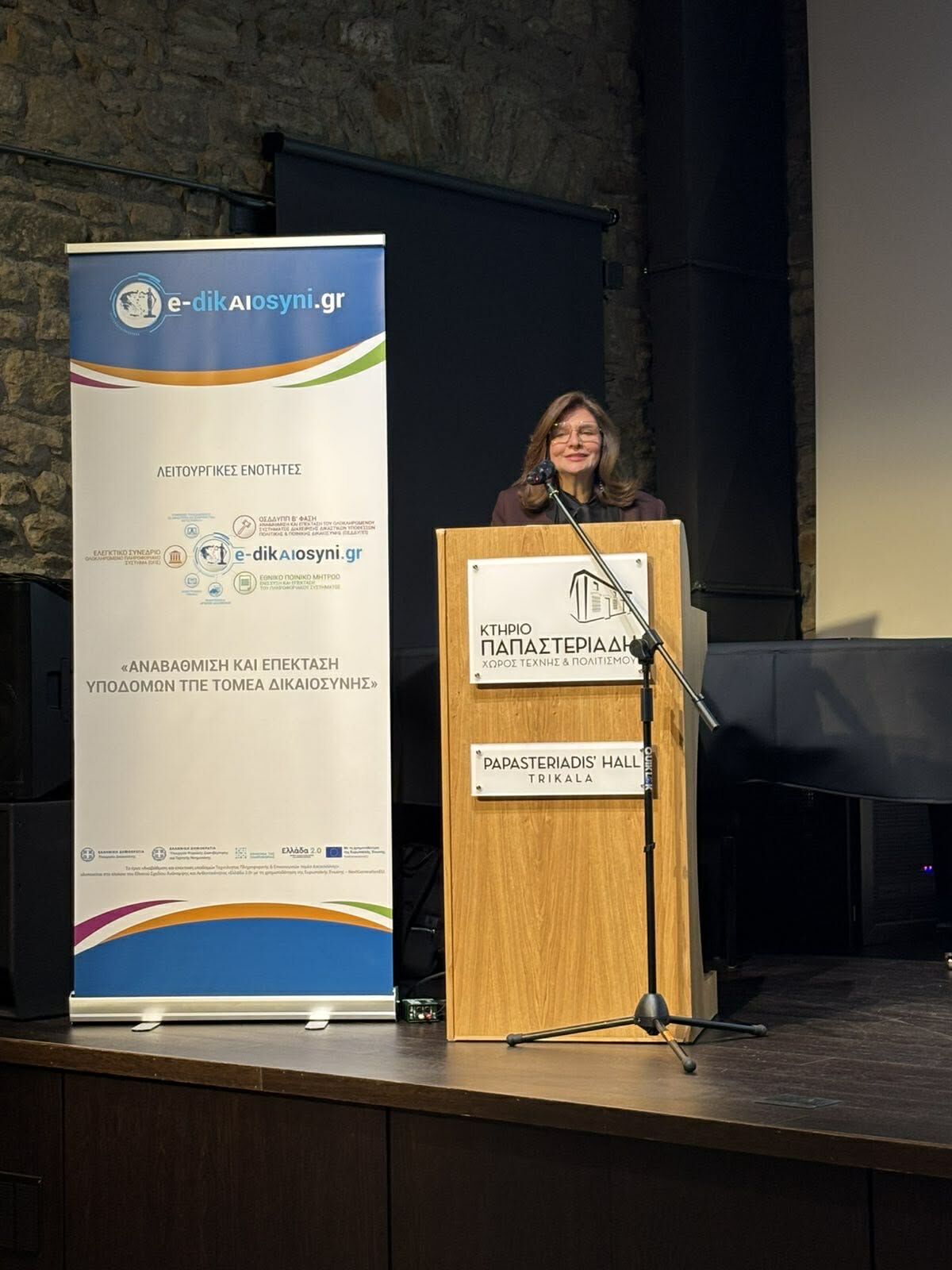 Στην αίθουσα Παπαστεριάδη του Δήμου Τρικκαίων, παρουσία ενός ακροατηρίου που αποτελούνταν κυρίως από νομικούς, ο Υπουργός Ψηφιακής Διακυβέρνησης Δημήτρης Παπαστεργίου παρουσίασε τις νέες πρωτοβουλίες για τον ψηφιακό μετασχηματισμό της Δικαιοσύνης.ενώ χαιρετισμό απηύθυναν εκ μέρους του Δήμου Τρικκαίων η δικηγόρος και δημοτική σύμβουλος Μαρίνα Καραμέτου και εκ μέρους του Δικηγορικού Συλλόγου Τρικάλων ο πρόεδρος Νίκος Γουγουλάκης.