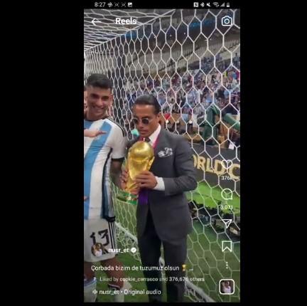 Ο διάσημος σεφ Salt Bae έγινε πρωτοσέλιδο το Σαββατοκύριακο για τη συμπεριφορά του στον τελικό του Παγκοσμίου Κυπέλλου, όπου απεικονίστηκε να αρπάζει το χρυσό τρόπαιο καθώς οι παίκτες και οι οικογένειές τους πανηγύριζαν τη νίκη.