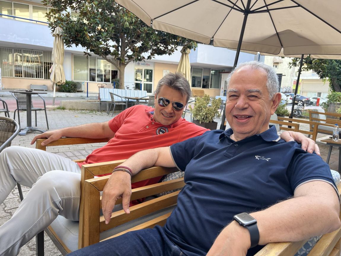 Οι δυο ιδιαίτερα , γνωστοί γιατροί στην πόλη, όπως συνηθίζουν, σχεδόν κάθε πρωί στο ίδιο μέρος, μαζί με παρέα συναδέλφων και όχι μόνο, αποτελούν το κέντρο ενδιαφέροντος αλλά και το πεδίο αιχμής στην πολιτική και αθλητική ζωή του τόπου .