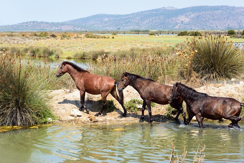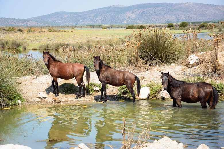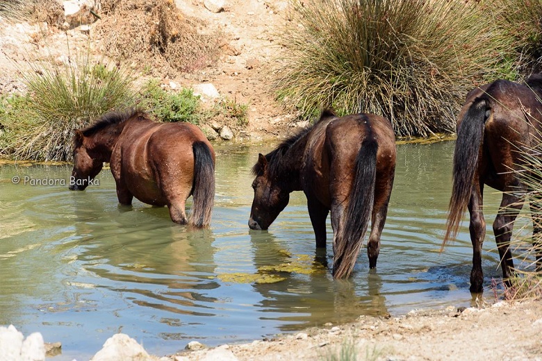 «Πηγαίνοντας στην παραλία του Λούρου για μπάνιο, έπεσα πάνω σε αυτό το εξαιρετικό και σπάνιο θέαμα: Τρία άγρια άλογα του Αχελώου, έπιναν νερό να ξεδιψάσουν! Δεν έχασα την ευκαιρία και τα φωτογράφισα».
