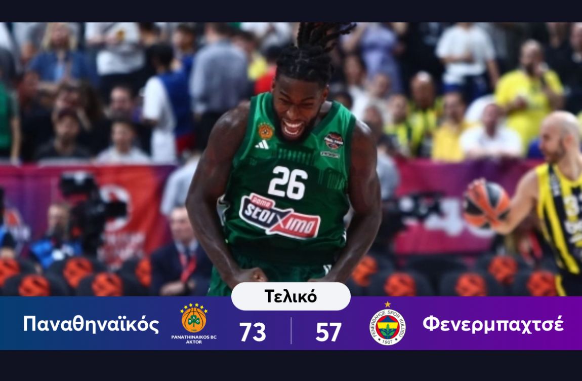 Ο Παναθηναϊκός επικράτησε της Φενέρμπαχτσε με 73-57 στον πρώτο ημιτελικό του Final Four της Euroleague και πήρε το εισιτήριο για τον τελικό της διοργάνωσης στο Βερολίνο. Ολυμπιακός ή Ρεάλ Μαδρίτης ο αντίπαλος του τριφυλλιού στον αγώνα τίτλου της Κυριακής (26/5, 21:00).