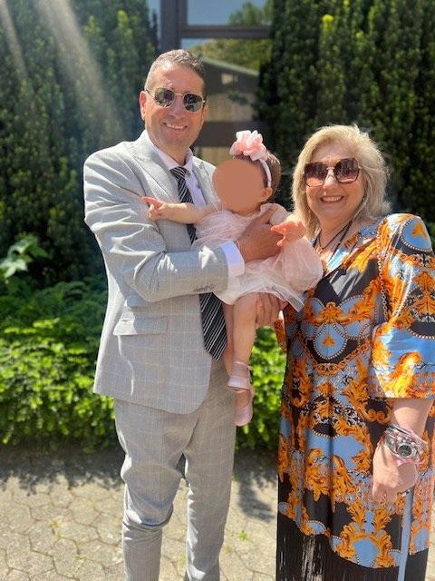 Πανευτυχείς παππούδες στην βάπτιση της εγγονούλας τους