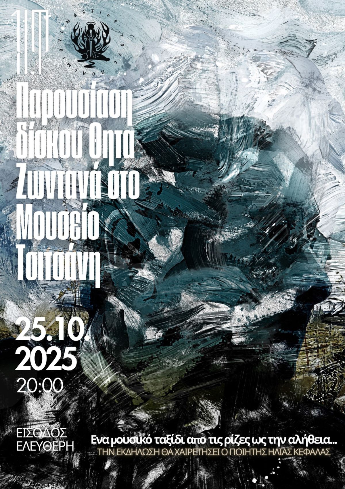 Ένας κόσμος που δεν περιγράφεται, αλλά βιώνεται. Αυτό καλεί και το κοινό να κάνει σε αυτή την ξεχωριστή βραδιά: να μη σταθεί στη λογική, αλλά να νιώσει. Να μην προσπαθήσει να ερμηνεύσει τα νοήματα, αλλά να τα βιώσει. Η παρουσίαση του δίσκου θα πραγματοποιηθεί ζωντανά στο Μουσείο Τσιτσάνη στα Τρίκαλα, το Σάββατο 25 Οκτωβρίου 2025, με ένα μοναδικό live – την πρώτη ζωντανή εμφάνιση του καλλιτέχνη από το 2012.