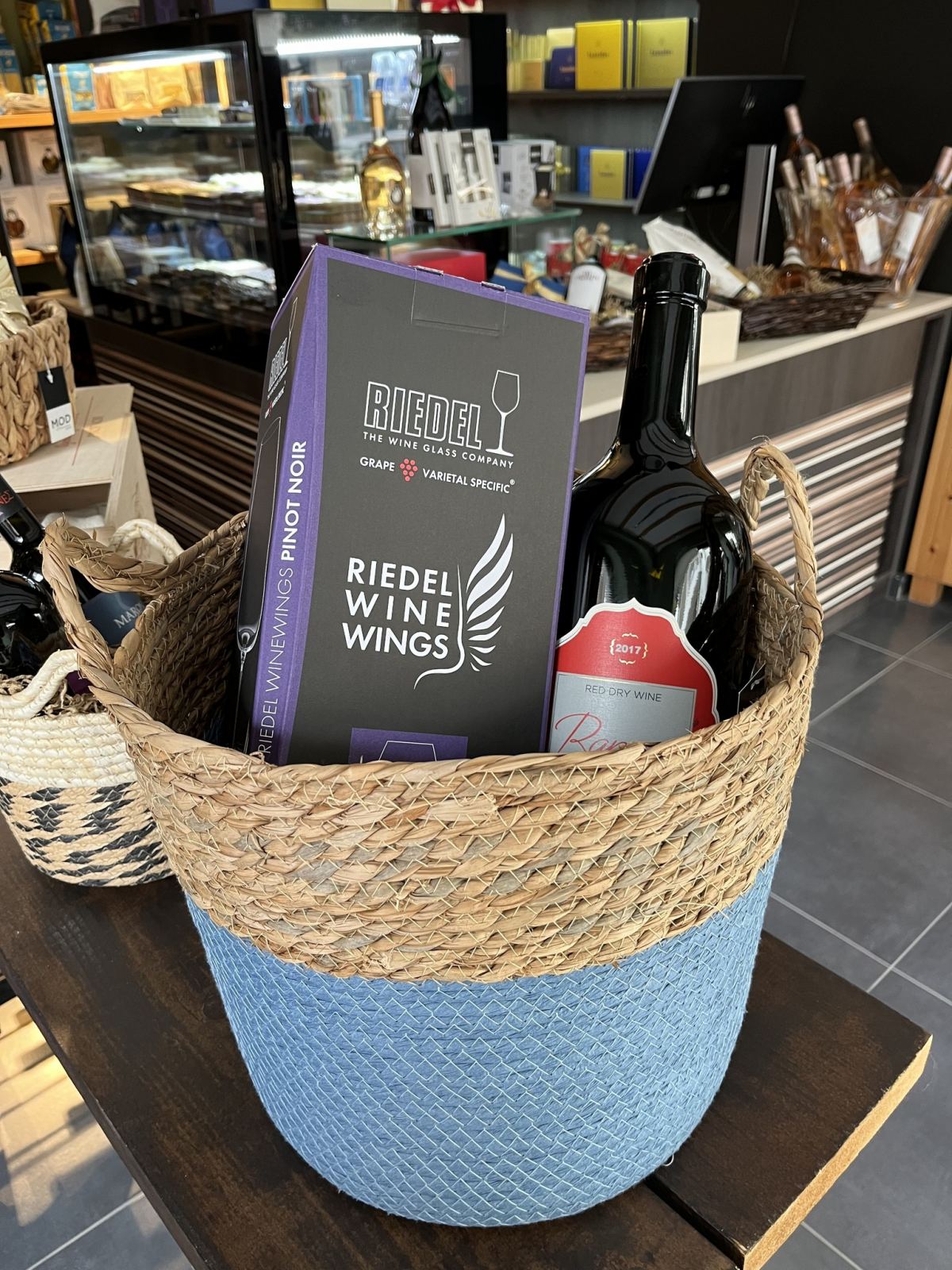Κορυφαία κρασιά & ποτά, Riedel, Leonidas pralines, Premium ζυμαρικά, σάλτσες, προϊόντα τρούφας, εξαιρετικά τυριά & αλλαντικά για να συνθέσετε ένα καλάθι στα μέτρα σας ανάμεσα σε πάνω απο 30 διαφορετικές επιλογές ξύλινων κουτιών, υδρουάκινθου, bamboo, φυσική ψάθα & υφασμάτινα.