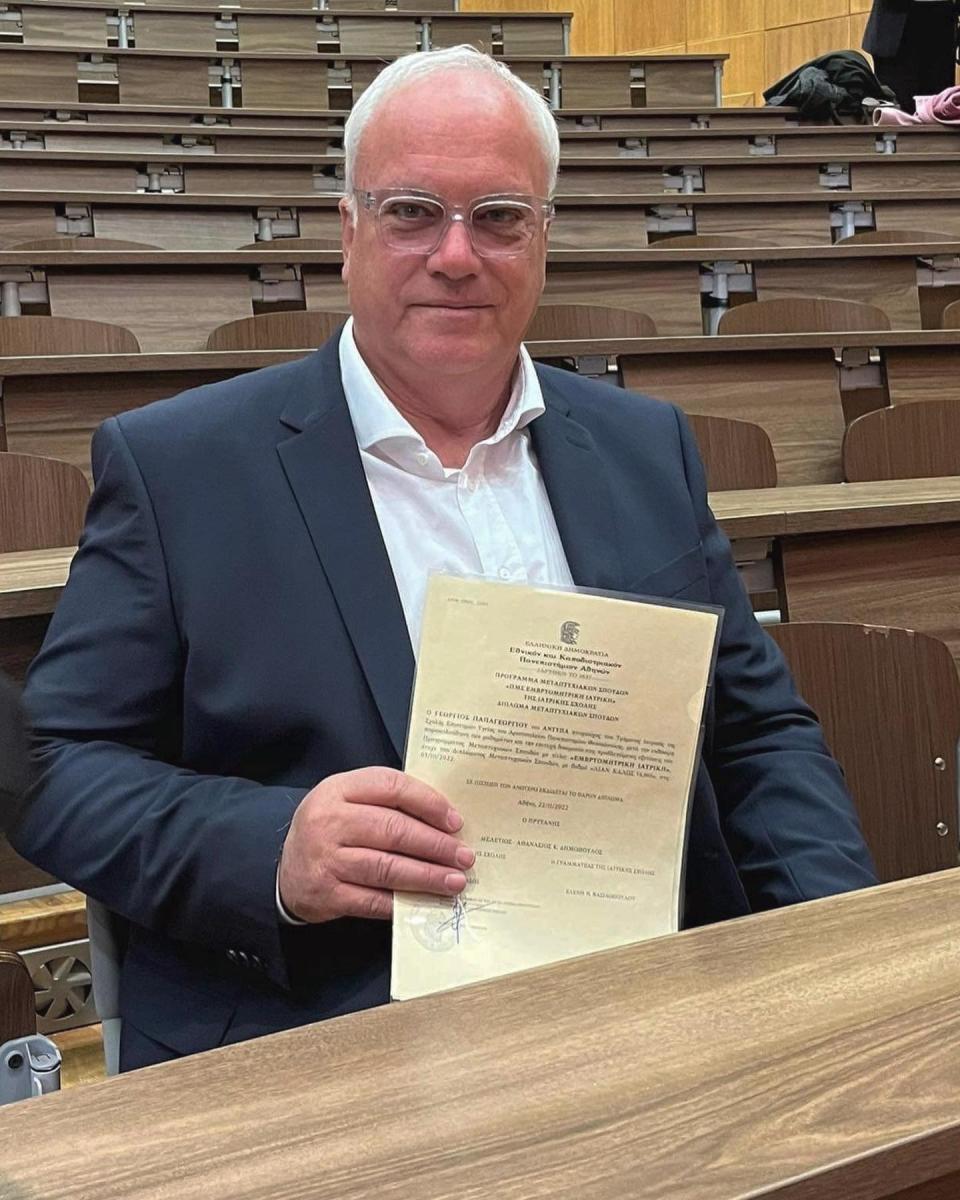 Με την παρακάτω ανάρτηση στο f/b o Dr Γιώργος Παπαγεωργίου έκανε γνωστό τον νεο πανεπιστημιακό τίτλο που κατέκτησε επάξια με στόχο στην ανάπτυξη του έργου του το έργο του συμβάλλοντας στην πρόοδο της σύγχρονης Ιατρικής