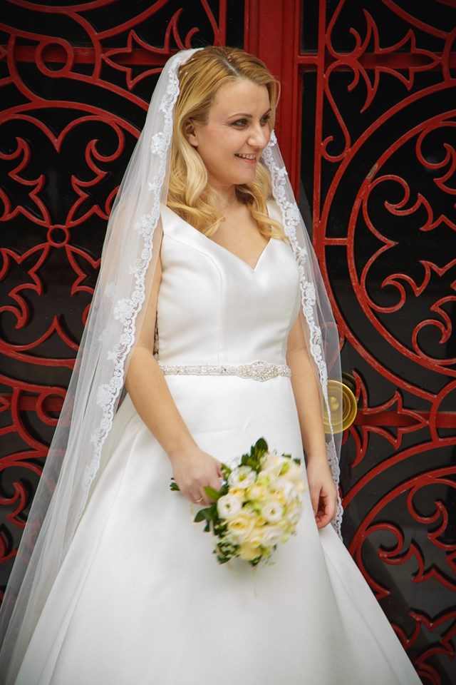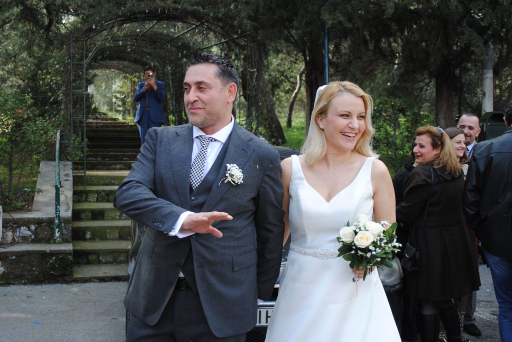 Η απαστράπτουσα νύφη μας εντυπωσίασε με το λευκό της σατέν νυφικό του οίκου Demetrios και το μακρύ πέπλο.Ενώ ο γαμπρός επέλεξε κοστούμι Tailor italian. Hairstyling Δημήτρης Ιωάννου και μακιγιάζ , Μαρία Σιόμπου.