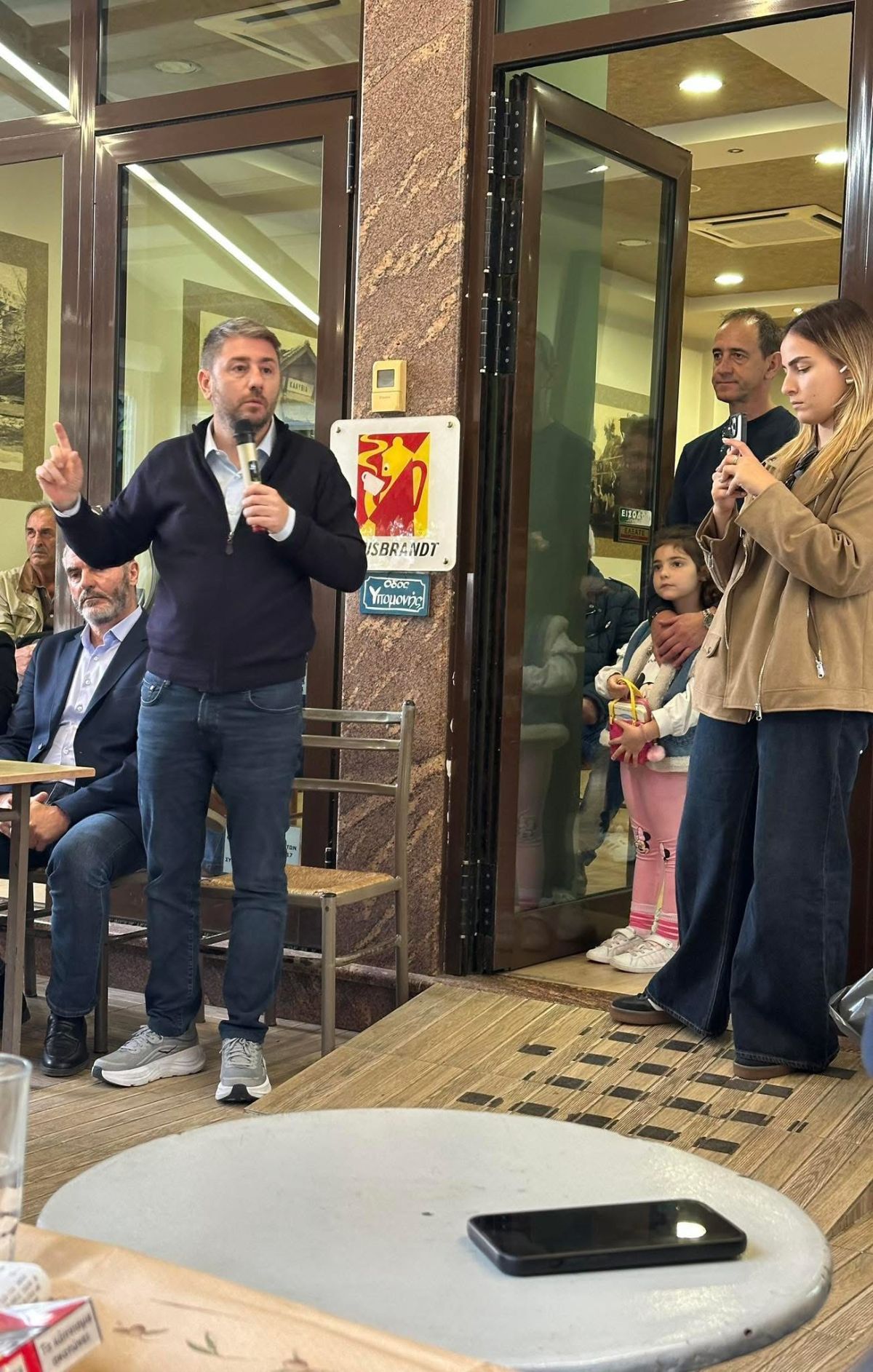 Τον συνόδευαν τοπικές δυνάμεις του ΠΑΣΟΚ, μεταξύ των οποίων η αντιπεριφερειάρχης Χρύσα Ντιντή ,ο Γραμματέας της ΝΕ ΠΑΣΟΚ ΤΡΙΚΑΛΩΝ Γιάννης Τριγώνης ,ο πρώην δήμαρχος Τρικκαίων και άλλα στελέχη της πράσινης παράταξης.