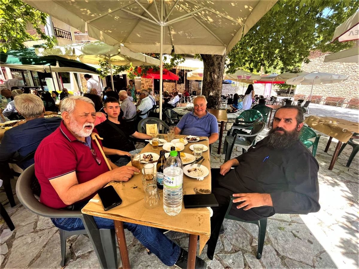 Στην δροσιά του πλάτανου με τον ιερέα του χωριού