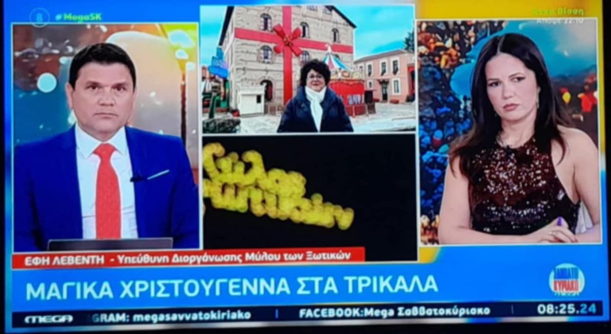 Η Πρόεδρος του E-Trikala, Έφη Λεβέντη εμφανίστηκε σήμερα το πρωί σε εκπομπή του MEGA, όπου μίλησε για τα «μαγικά Χριστούγεννα» στον Μύλο των Ξωτικών, ο οποίος εδώ και 14 χρόνια αποτελεί κορυφαίο χριστουγεννιάτικο προορισμό, προσελκύοντας χιλιάδες επισκέπτες από όλη την Ελλάδα.