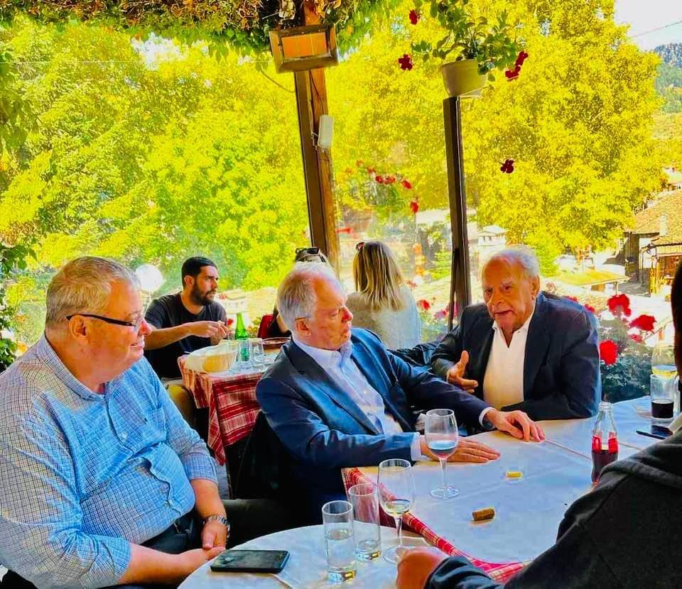Ο πρώην Προεδρος της βουλής Αχιλλεας Καραμανλής επισκέφτηκε φίλους στο Μετσοβο και ανάμεσα τους ο περιφερειάρχης Ηπείρου Αλέκος Καχριμάνης . Η παρέα πέρα των άλλων γευμάτισε σε κεντρικό ταβερνείο και αντάλλαξε απόψεις για την τρέχουσα πολιτική κατάσταση