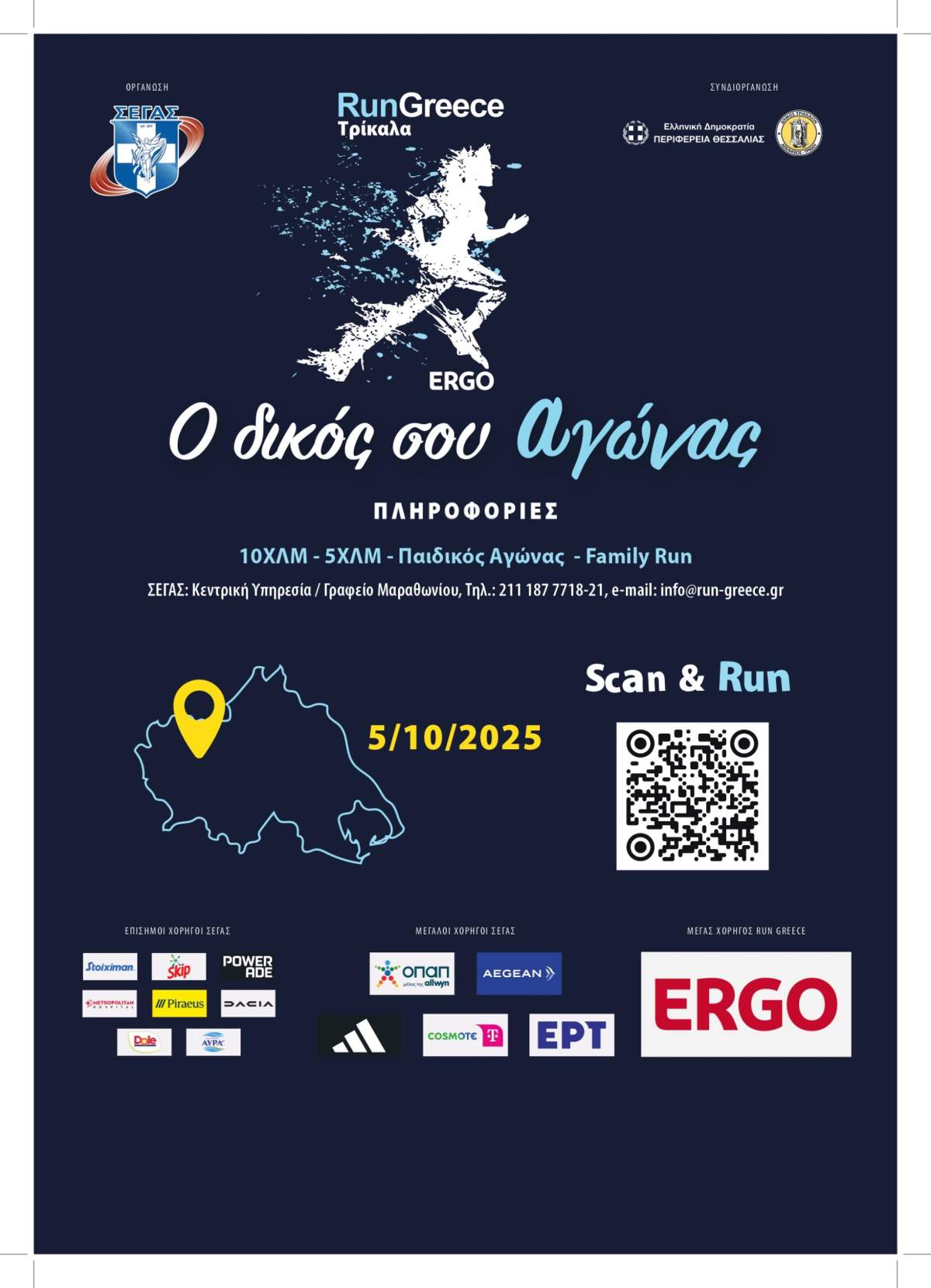 Τον αγώνα διοργανώνει ο ΣΕΓΑΣ με τη συνδιοργάνωση της Περιφέρειας Θεσσαλίας και του Δήμου Τρικκαίων,