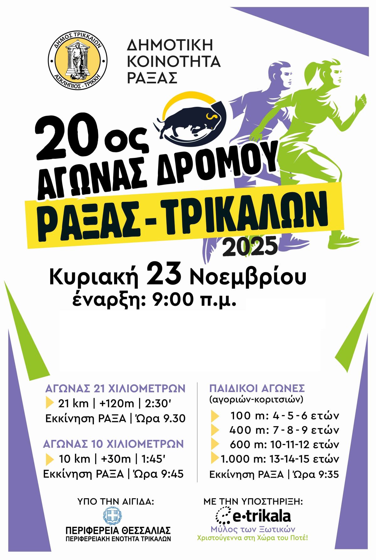 Στις 23 Νοεμβρίου ο Ημιμαραθώνιος Ράξας – Τρικάλων