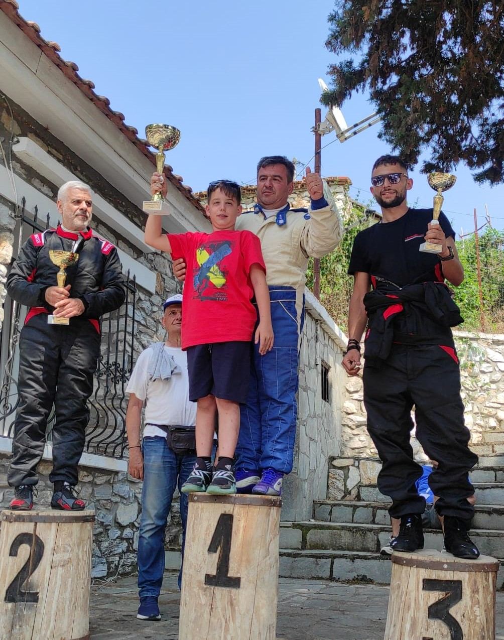 Στο βάθρο του νικητή, περιχαρής ,ο Τέο Παπαβασιλείου ,πρώτος, σε μια ακόμη ανάβαση ραλί