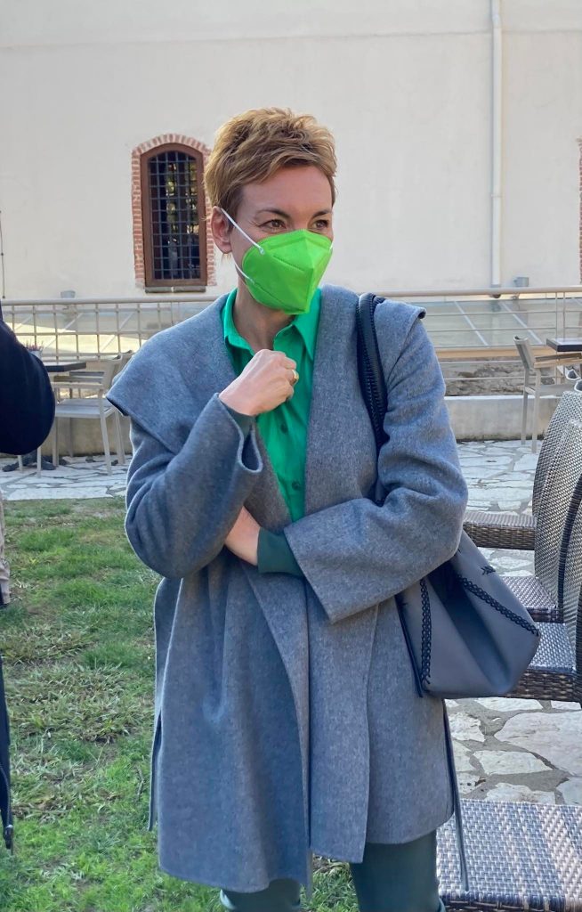 Στο πλευρό του Νίκου Ανδρουλάκη έχει ταχθεί πολιτικά από την πρώτη στιγμή και από την επίσκεψη του στα Τρίκαλα δεν θα μπορούσε να λείπει η Μικροβιολόγος Βασίλκα Μερεντίτη, με άψογο sportive ντύσιμο και φυσικά ”πράσινη” μάσκα. Ευχαριστημένη από την προσέλευση και την στήριξη του τρικαλινού κόσμου η κ.Μερεντίτη πάντα σε χαμηλούς τόνους πρωτίστως στηρίζει την κουμπαριά της με τον Νίκο αλλά και την ομολογουμένως δυναμική υποψηφιότητα του για την προεδρία του ΚΙΝΑΛ.
