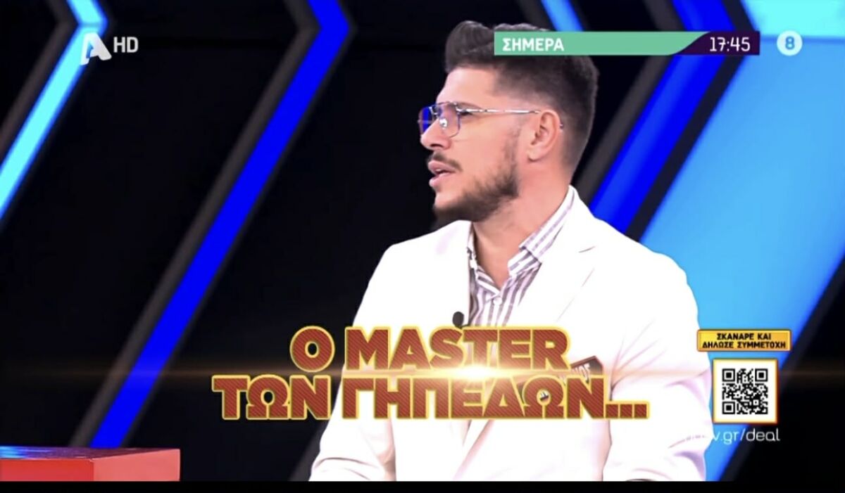 Ο Τρικαλινός Κωνσταντίνος Γουργούλιας γνωστός ως γυμναστής και προπονητής ποδοσφαίρου σε διάφορες ομάδες των Τρικάλων, αλλά και από το πέρασμά του τα προηγούμενα χρόνια ως pr στη nightlife των Τρικάλων, στο θρυλικό Baccarat είχε τη τιμητική του, καθώς συμμετείχε στο γνωστό τηλεπαιχνίδι του Deal με τον Γιώργο Θαναηλάκη. Όλες αυτές τις μέρες συμμετείχε ως παίκτης του νομού Τρικάλων, καθώς πλέον βρίσκεται στο νομό Φωκίδας, ως εκπαιδευτικός Φυσικής Αγωγής και προπονητής στη πόλη της Ιτέας. Μη χάσετε σήμερα το επεισόδιο που θα προβληθεί στις 17:45. Για να δούμε η τύχη ήταν με το μέρος του;