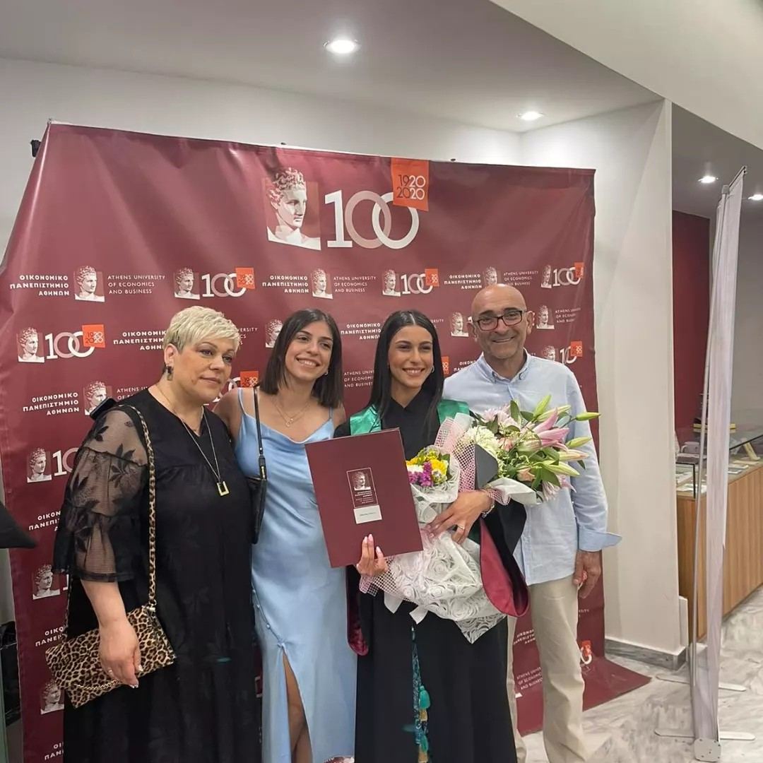 Συγχαρητήρια αγαπημένη μας, είμαστε πολύ περήφανοι ακόμη μια φορά για αυτά που έχεις καταφέρει και για το άτομο που εχεις γίνει, ένας κύκλος κλείνει, ενας άλλος ανοίγει, απόλαυσε αυτή τη στιγμή, αυτή τη μέρα και τα καλύτερα σε περιμένουν, κράτα ανοιχτά το μυαλό σου και την καρδιά σου για να αγκαλιάσεις τις προκλήσεις που θα ερθουν…εμείς θα είμαστε δίπλα σου να σε στηρίζουμε και να σ αγαπάμε..!