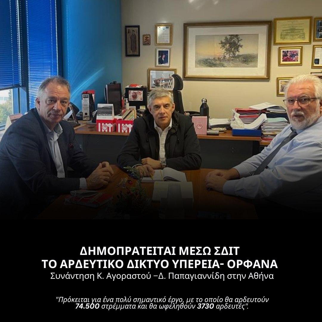 Ξεκινούν από το Υπουργείο Αγροτικής Ανάπτυξης και Τροφίμων οι διαδικασίες δημοπράτησης για την κατασκευή -μέσω ΣΔΙΤ- του υπόγειου αρδευτικού δικτύου Υπέρεια – Ορφανά.