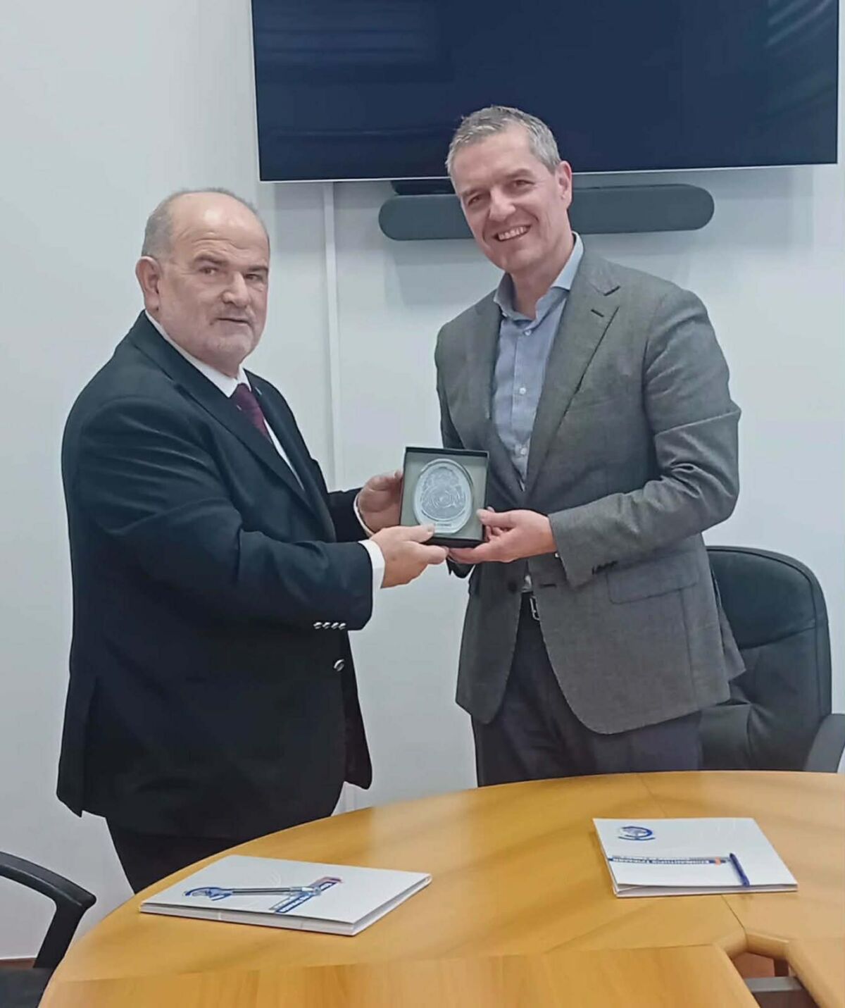 Κατά τη διάρκεια της συνάντησης, ο πρόεδρος του Επιμελητηρίου Τρικάλων, κ. Κωνσταντίνος Παπαευθυμίου, παρέλαβε απο τον κ. Καββαθά συμβολική πλακέτα συνεργασίας, ως ένδειξη της καλής συνεργασίας και της κοινής προσπάθειας για την ενίσχυση της επιχειρηματικότητας στην περιφέρεια.