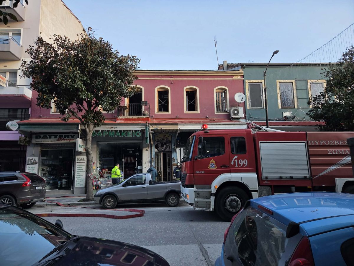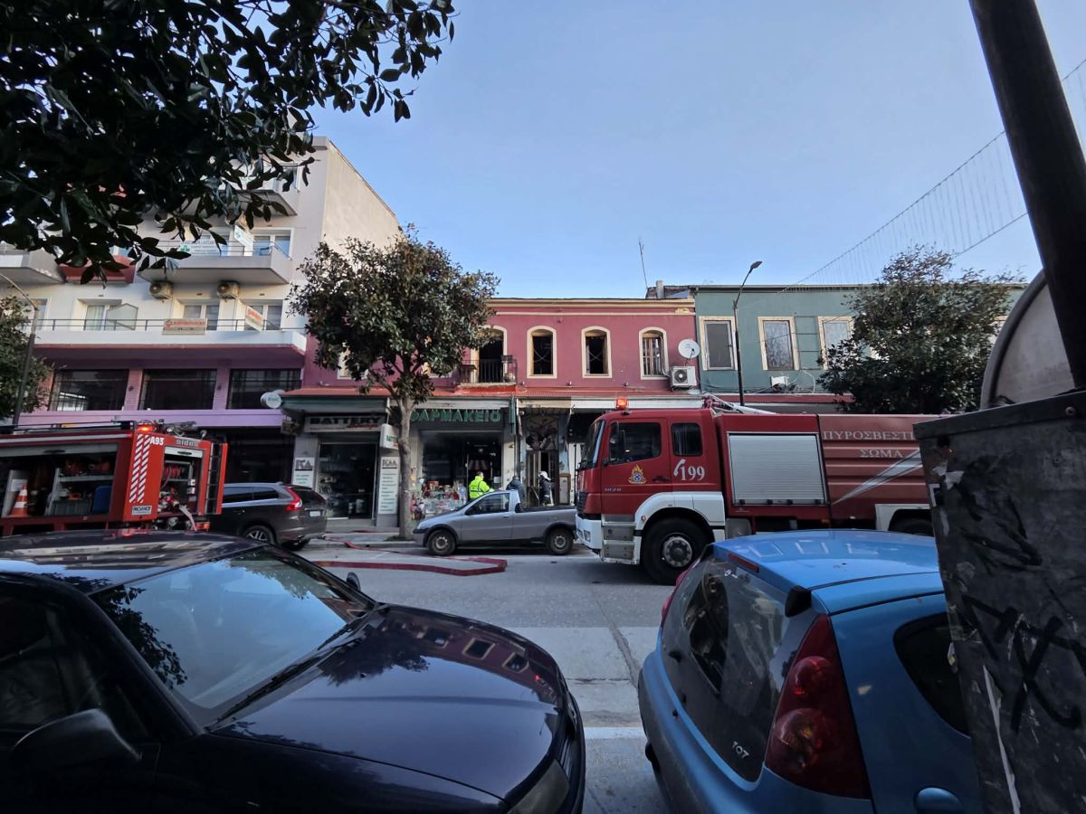 Οι πυροσβέστες πραγματοποιούν ελέγχους τόσο στο φαρμακείο Σαπουνά, όσο και στη “Σουίτα” που βρίσκεται από πάνω, καθώς και στα γύρω καταστήματα, για προληπτικούς λόγους.