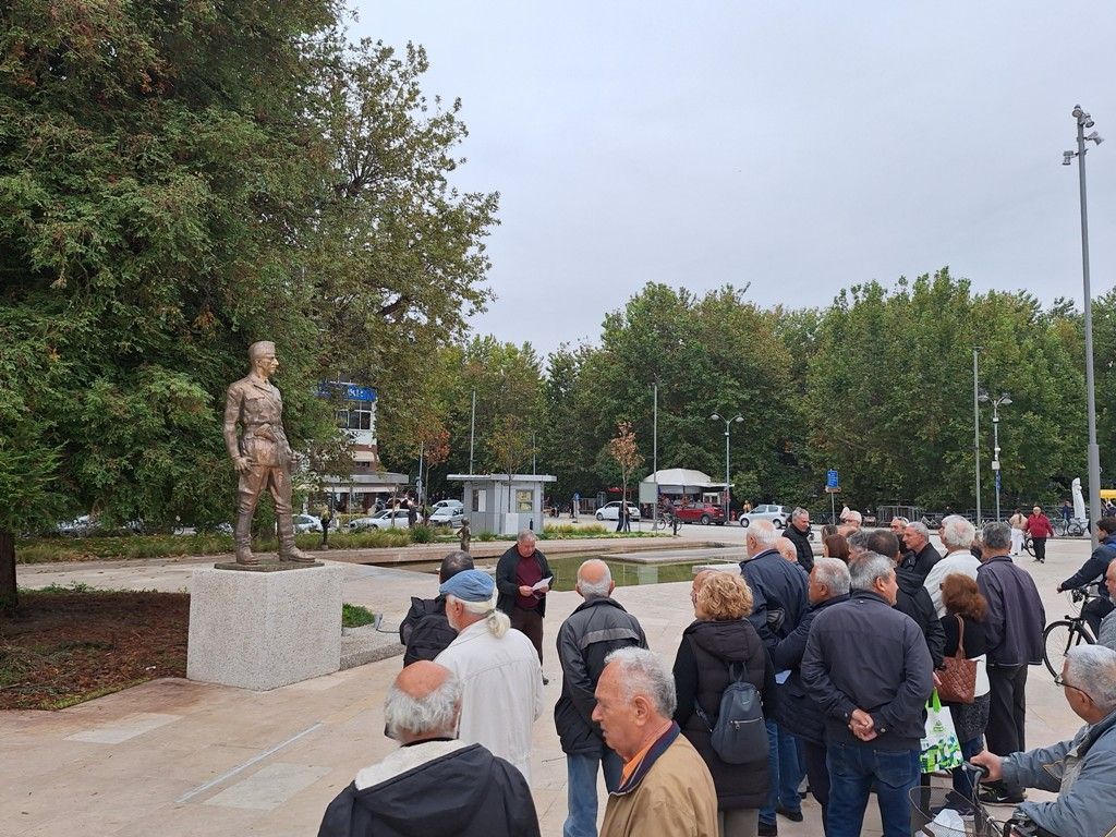 Η ΠΕΑΕΑ-ΔΣΕ-ΑΠΟΓΟΝΟΙ Τρικάλων διοργάνωσε εκδήλωση μπροστά στο άγαλμα του στρατηγού του ΕΛΑΣ Στέφανου Σαράφη