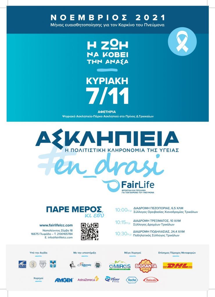 Φέτος τον Νοέμβριο, μήνα ευαισθητοποίησης για τον Καρκίνο του Πνεύμονα και ο Σύλλογος Δρομέων Τρικάλων στηρίζει την δράση της Fair Life στην πόλη μας .