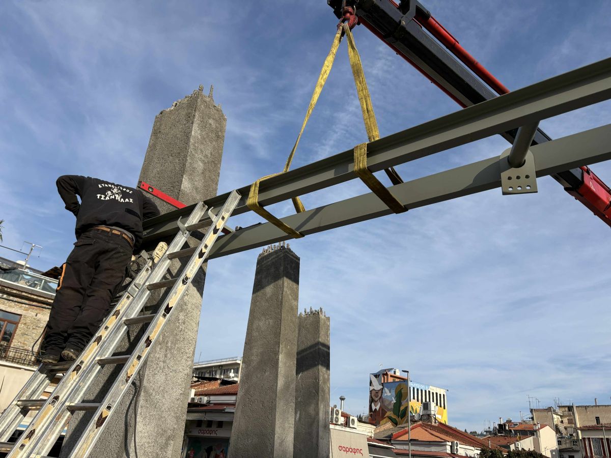 Τοποθετείται το μεταλλικό στέγαστρο στην πλατεία – Ένα βήμα πριν την ολοκλήρωση