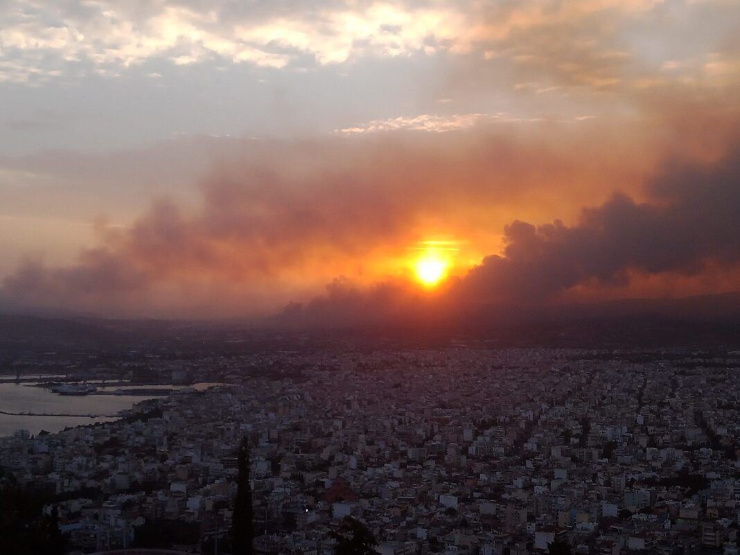 Το ηλιοβασίλεμα στο Βόλο μέσα απο τις φωτιές