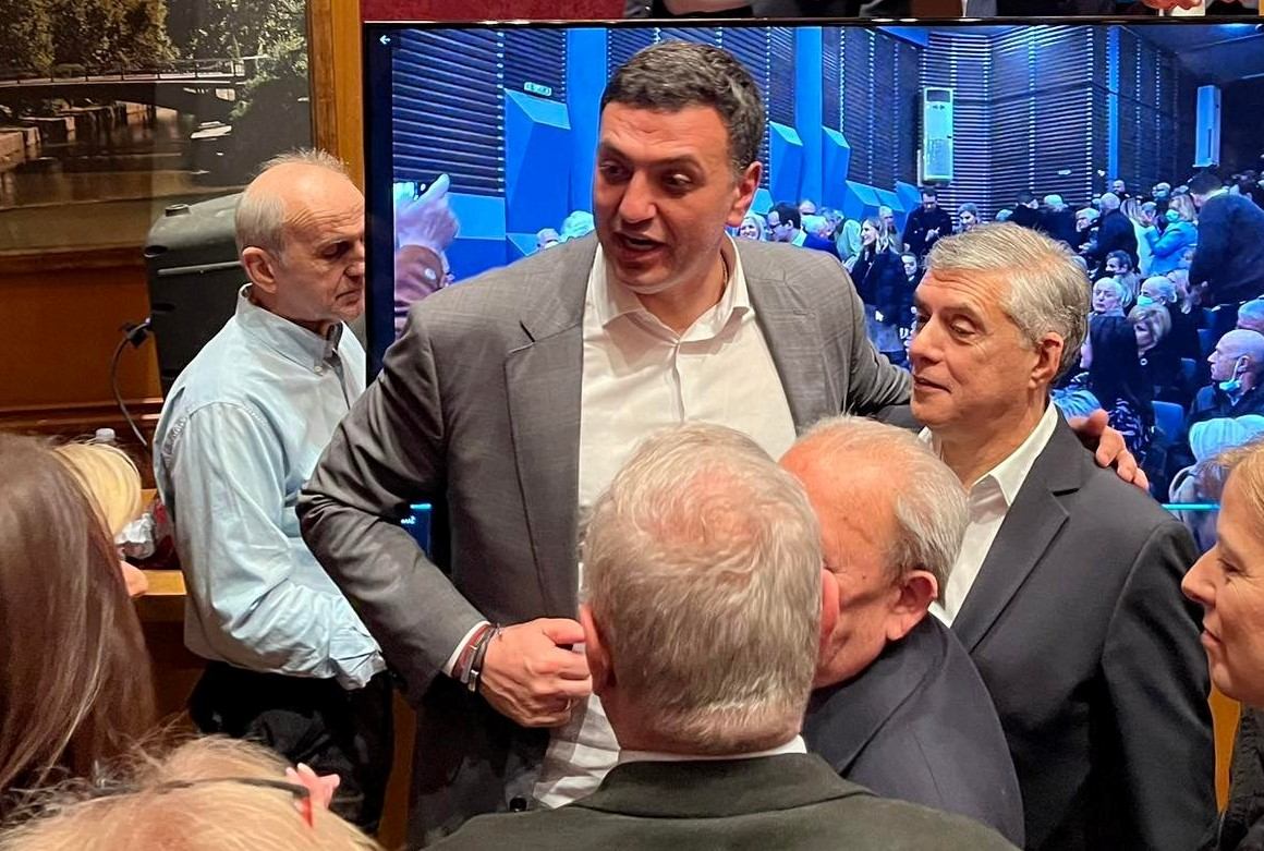 Τον Περιφερειάρχη Κώστα Αγοραστό έσπευσε να αγκαλιάσει και να χαιρετίσει μετά την ομιλία του στην επιτυχημένη εκδήλωση του Μικέλη Χατζηγάκη, ο Υπουργός Βασίλιας Κικίλιας.