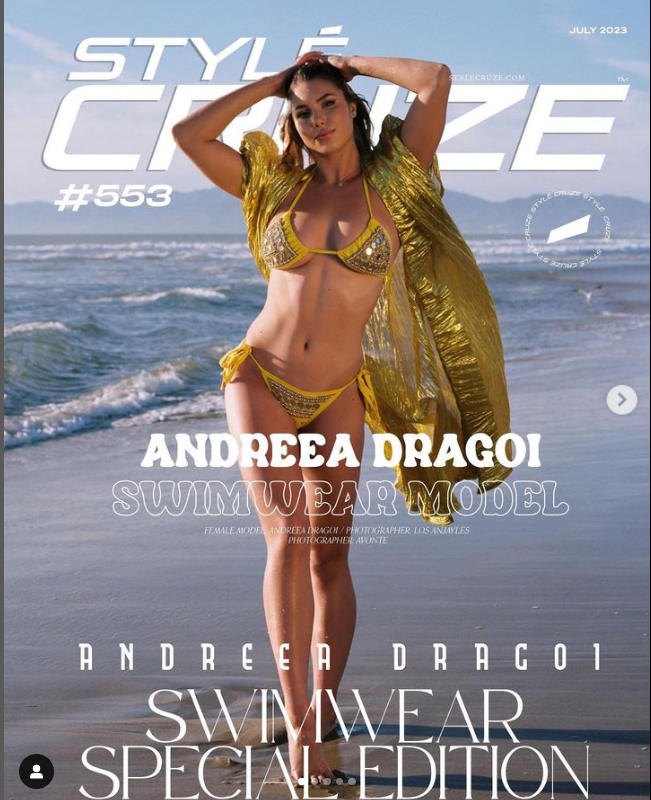 Το ξανθό μοντέλο από τη Ρουμανία έκανε πασαρέλα στην Εβδομάδα Μόδας του Λος Άντζελες για την Krissy King φορώντας χρυσό μπικίνι και φτερά αγγέλου. Η Άντρεα Ντραγκόι λίγες ώρες αργότερα ανέβασε στον προσωπικό της λογαριασμό στο Instagram φωτογραφίες από το event και οι followers της «αναστατώθηκαν», ενώ αρκετοί την χαρακτήρισαν «θεά» στα σχόλια τους. . Να αναφέρουμε ότι η Ρουμάνα αθλήτρια και μοντέλο έχει 82,1 χιλιάδες ακόλουθους στο instagram.
