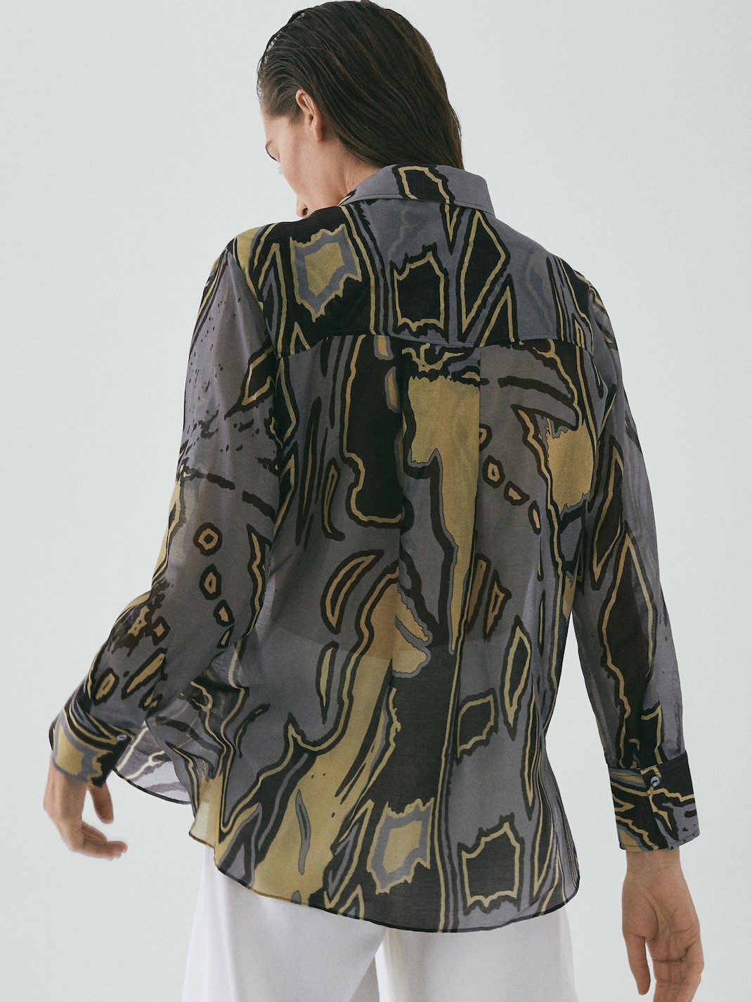 Η ιδέα ενός printed μεταξωτού πουκάμισου μπορεί να παραπέμπει στα ξέφρενα 70s, όπου θα συνδυαζόταν με γιλέκο, παντελόνι καμπάνια και μαντήλι στα μαλλιά φορεμένο ως μπαντάνα.