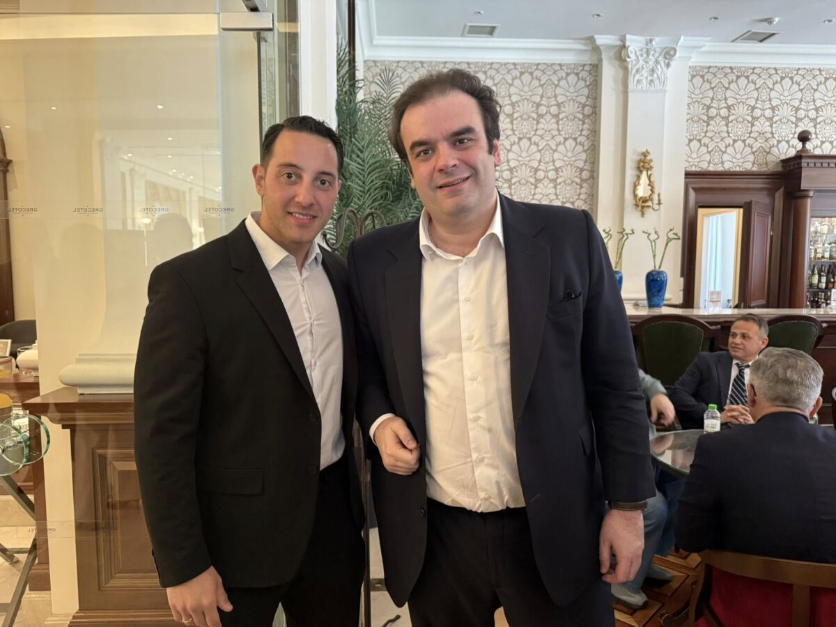 Ο δημοτικός σύμβουλος Θωμάς Μερτσιώτης με τον Υπουργό Οικονομικών και Πρόεδρο του Eurogroup, Κυριάκο Πιερρακάκη. Δυναμική ήταν η παρουσία της ΔΕΕΠ Τρικάλων με την πρόεδρο Μάνη Γιανοτάκη και τα στελέχη του κόμματος.