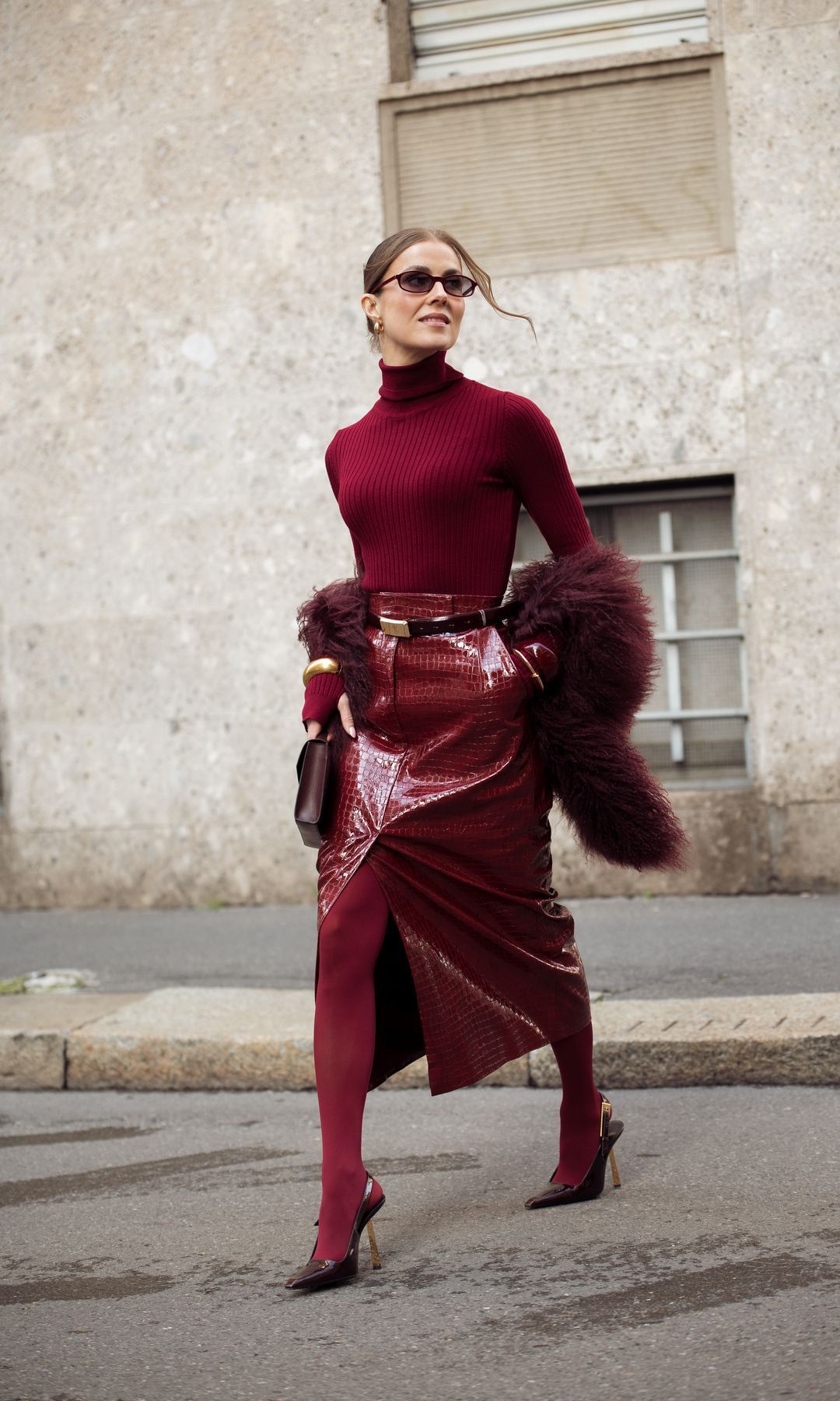 Υπέροχη επιλογή! Η κόκκινη δερμάτινη φούστα είναι statement piece