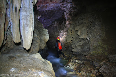 Περιγραφή σπηλαίου: Η είσοδος έχει μεγάλο άνοιγμα και δεν επηρεάζεται από τη στάθμη-ποσότητα του νερού. Το ποτάμι εισχωρεί σε σιφώνι 1 μέτρο μετά την είσοδο και εκτονώνεται μερικά μέτρα πιο κάτω με αρκετή ορμή, για να σχηματίσει καταρράκτη 30 μέτρων στη θέση με την ονομασία «Γκούρα Μπαντιμάρι». Στα πρώτα 15 μέτρα του σπηλαίου η προσπέλαση γίνεται δίπλα από τον ποταμό σε στεγνό δάπεδο με αρκετό και όμορφο διάκοσμο. Ακολουθεί μεγάλος θάλαμος με ύψος οροφής 5 μέτρα και πολλές κατακριμνήσεις στο δάπεδο. Η πορεία του νερού γίνεται κάτω από αυτές και για μερικά μέτρα περπατάμε σε βράχους μην έχοντας επαφή με το νερό. Στη συνέχεια ο αγωγός στενεύει και κάνει μια στροφή, ενώ η προσπέλαση γίνεται μέσα από νερό που έχει βάθος 1 μέτρο. Το ποτάμι συνεχίζει για άλλα 30 μέτρα που στο τέλος έχουνε όμορφο λιθωματικό διάκοσμο. Μετά από μία τελευταία στροφή το ταβάνι χαμηλώνει και η συνέχεια είναι αδύνατη. Το σύνολο της διαδρομής είναι στα 70 μέτρα περίπου.