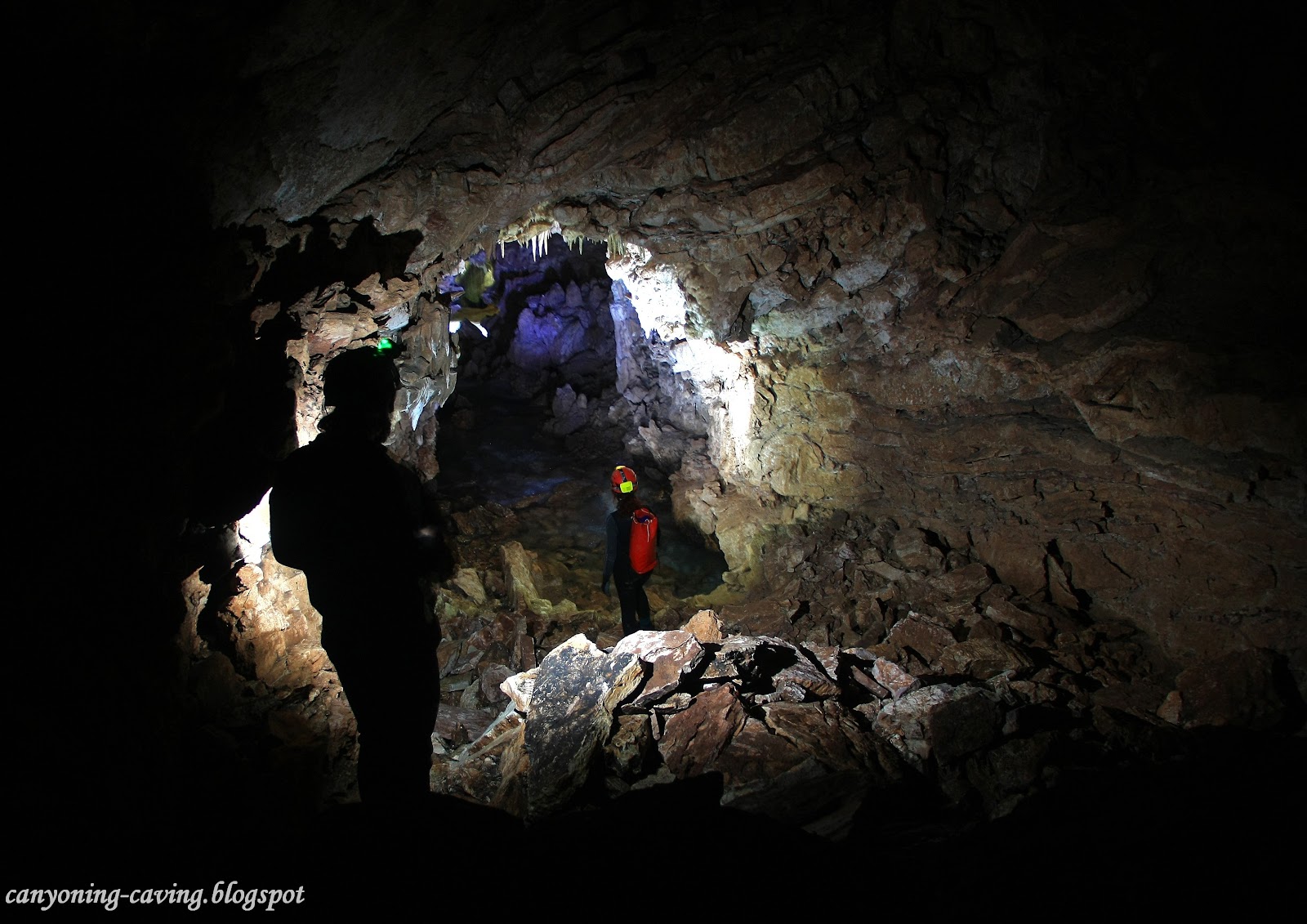 | το πέτρωμα που εμφανίστηκε μετά την κατάρρευση της οροφής έχει χαρακτηριστική κόκκινη απόχρωση |