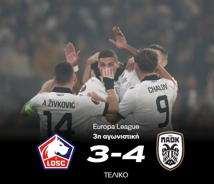 Λιλ – ΠΑΟΚ: Ασύλληπτο πρώτο ημίχρονο στη Γαλλία με τρία γκολ από τον Δικέφαλο του Βορρά