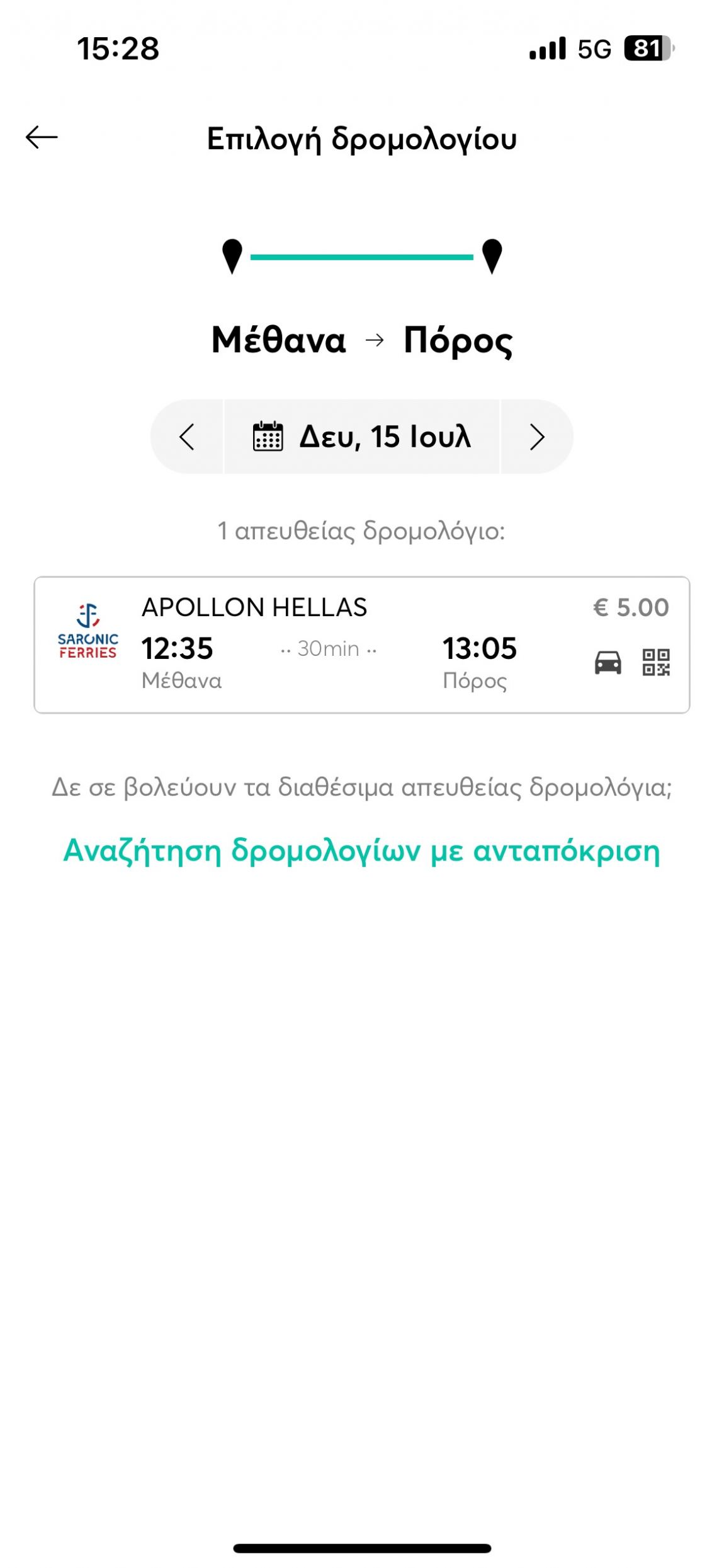Με μόλις 5€, μπορείς να πάρεις το πλοίο για Πόρο από τα Μέθανα στην Πελοπόννησο. Το