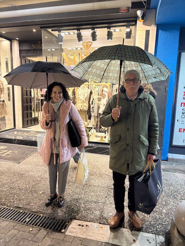 Με χαλαρό τόνο και εύθυμη διάθεση, αξίζει να κάνουμε μια στάση στο διαχρονικό ζευγάρι των Τρικάλων, τον Σωτήρη Καλαμπόκα και τη Ρίτσα. Ανήμερα των Χριστουγέννων μάς χάρισαν τις πιο ζεστές ευχές, όπως ακριβώς ταιριάζει σε ανθρώπους απόλυτα εναρμονισμένους με τον συνάνθρωπο και το πνεύμα της προσφοράς που χαρακτηρίζει αυτές τις άγιες μέρες. Κοινωνικά καταξιωμένοι, με απογόνους που τους κάνουν περήφανους, απολαμβάνουν τις ξεχωριστές στιγμές των γιορτών στα Τρίκαλα, βολτάροντας στην εμπορική αγορά και σκορπίζοντας χαμόγελα. Ένα ζευγάρι που αποδεικνύει πως η απλότητα, η ανθρωπιά και η καλή διάθεση είναι πάντα στη μόδα.