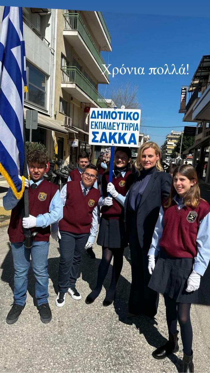 Οι μαθητές των Εκπαιδευτηρίων Σακκά με περηφάνεια στην παρέλαση της 25ης Μαρτίου, μαζί τους η Ρία Σακκά ψυχή των Εκπαιδευτηρίων .