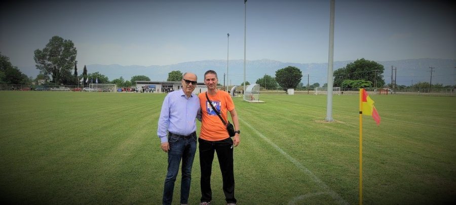 Στην φωτό με τον συνάδελφό του, ιατρό Κίμωνα Χαχάμη, με φόντο το καταπληκτικό αθλητικό κέντρο του Ερασιτέχνη στην Σωτήρα και με τον Μεγαλοκαλυβιώτη επιστήμονα και φίλο του ΑΟΤ να προσφέρει απλόχερα την υποστήριξή του, στο εντυπωσιακό εγχείρημα της νέας εποχής αλλά και να αποδίδει τα συγχαρητήριά του στον πρόεδρο της διοίκησης ο οποίος πρότεινε και έκανε τα αδύνατα δυνατά για να πραγματοποιηθεί αυτό το σημαντικό όσο και ιστορικό έργο στις τάξεις του ΑΟ ΤΡΙΚΑΛΑ